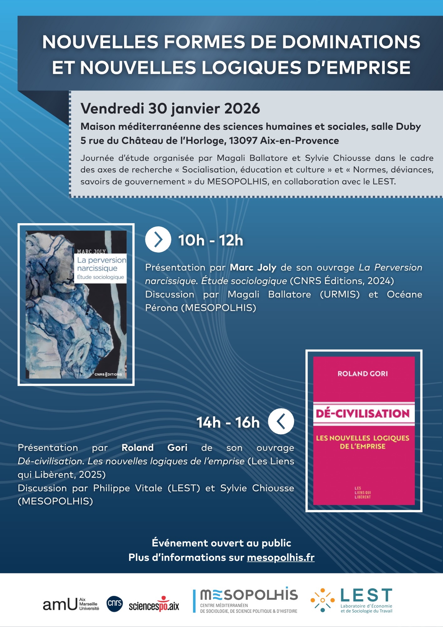Journée d'étude organisée par Magali Ballatore et Sylvie Chiousse dans le cadre des axes de recherche « Socialisation, éducation et culture » et « Normes, déviances, savoirs de gouvernement» du MESOPOLHIS, en collaboration avec le LEST.