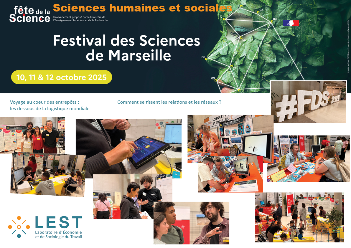 Cette année, le LEST (Laboratoire d’Économie et de Sociologie du Travail, UMR CNRS–Aix-Marseille Université) participe pour la première fois à la Fête de la Science, en rejoignant le festival des sciences de Marseille les 11 et 12 octobre 2025.