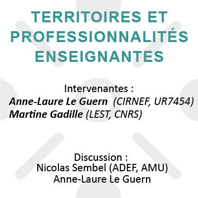 Dans le cadre du séminaire TREC - Territoires, Régulations, Expérimentations et Coopérations du LEST, Anne-Laure le Guérin (CIRNEF - Centre Interdisciplinaire de Recherche Normand en Éducation et en Formation UR7454, Normandie Université) et Martine Gadille (LEST, CNRS) traitent du thème des Territoires et professionnalités enseignantes.